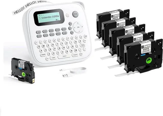 & - : VolenGo D210s label maker machine features easy setup, user-friendly menus, and intuitive settings; Our label machine with tape features one-touch smart keys, providing easy access to a wide range of options, including over 640+ symbols, 16 font styles, 100+ frames, and much more