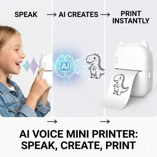 Speak, Create, Print Powered by AI: Experience the next evolution of printing with YPANX. Built with a cutting-edge Large Language Model (LLM), this printer transforms your voice into visuals instantly. Simply speak your ideawhether it's a "cute cat eating pizza" or a "a puppy riding a bike"and watch the AI generate a unique image that prints in seconds. No complex design skills needed, your voice is the only tool you need.