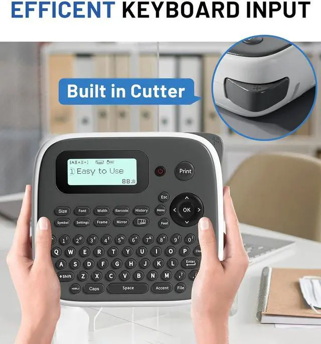 User-Friendly Design : The handheld label maker with keyboard features an easy-to-use QWERTY keyboard, eliminating the need for phone or computer connectivity. This user-friendly design makes it suitable for people of all ages, including old people and children. The label maker machine with tape also includes one-touch smart keys, granting quick access to over 640+ symbols,16 font styles,100+ Frame, and more