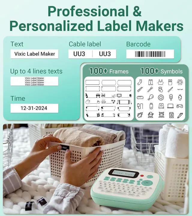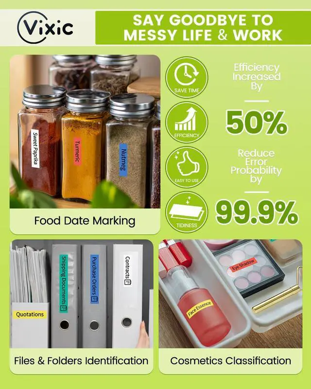 Vixic D210S Label Maker Machine with Tapes, Easy to Use for All Ages: No need for mobile device connections! The D210S label maker simplifies the process for everyone, including kids and the elderly. From powering on to editing and printing, it only takes 20 seconds! Experience quick and effortless labeling