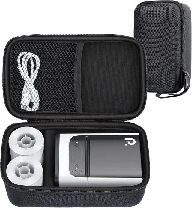 Simple and Practical DesignThe interior has a large storage space, which can effectively store at least one label printer, two rolls of label tapes and keep items in order. Equipped with a lanyard for easy carrying, the rubber bands inside with good elasticity, it is convenient to take label makers & printers out and put it in