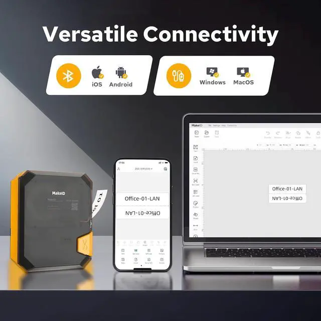 • App-Enabled Customization - With 48 templates, 80+ symbols, and 20 fonts, the MakeID app simplifies creating complex labels, including barcodes and QR codes, and supports bulk data import for efficient on-site labeling.
