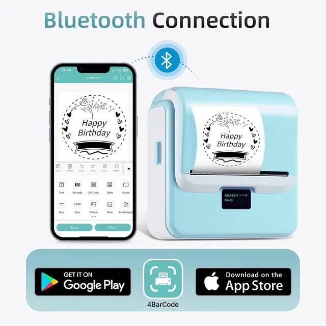 Powerful App: With Bluetooth connectivity, you can use the free 4Barcode app, which offers over 150 ready-to-use label templates to boost your efficiency; You can also design and save your own templates with access to 80+ fonts and 670+ icons; The app supports a variety of features, including QR codes, barcode labels, tables, materials, timestamps, numbers, text, icons, and more, enabling fully customized label creation
