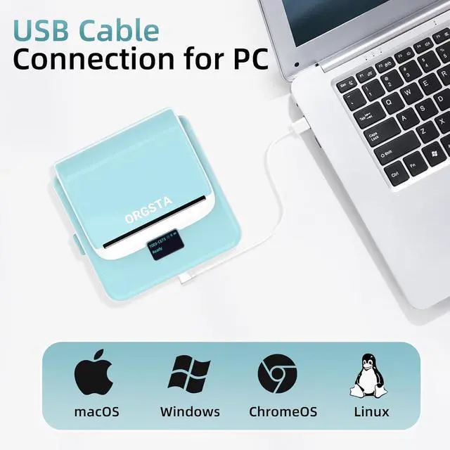 Effortless Connectivity: ORGSTA T003 Bluetooth label maker is compatible with iOS, Android, and PC; Connect effortlessly to your phone via Bluetooth or to your computer using a USB cable; Label printer includes an easy-to-install driver compatible with Windows, Mac OS, Chrome OS and Linux; For iOS & Android phone, simply download the "4Barcode" app
