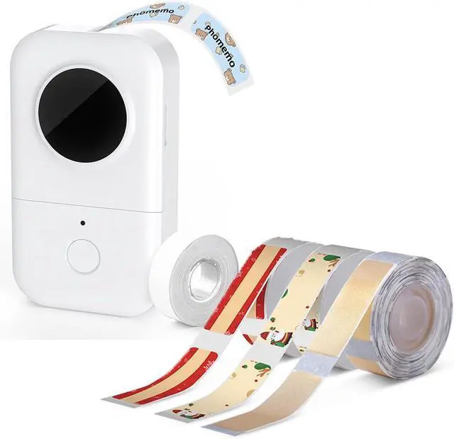 Item: 1x Label Maker with 3x Black on Christmas Pattern, Gold, Snow Mix Color Sticker Thermal Paper