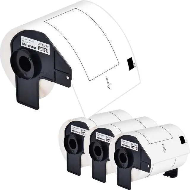 Package Includes: 4 roll KCMYTONER compatible for DK-1247 die-cut shipping thermal direct label; color: black print on white tape; size: 4.07 in x 6.4 in (103mm x 164mm), 180 labels per roll.