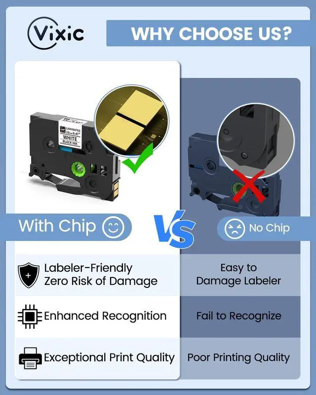 Label Maker Machine with Tape Waterproof: Package includes full-length (26.2 ft each) 12mm 0.47 inch black ink on white tapes for added value. Vixic BZ tapes use 7-layer lamination technology to withstand water, fading, abrasion, and temperature. BZ laminated tapes can be stored for up to 10 years. Great for home, classroom, small business, and office organization. Easily stick labels on kids' school items, file folders, kitchen containers, jars, storage bins, nail swatches, etc