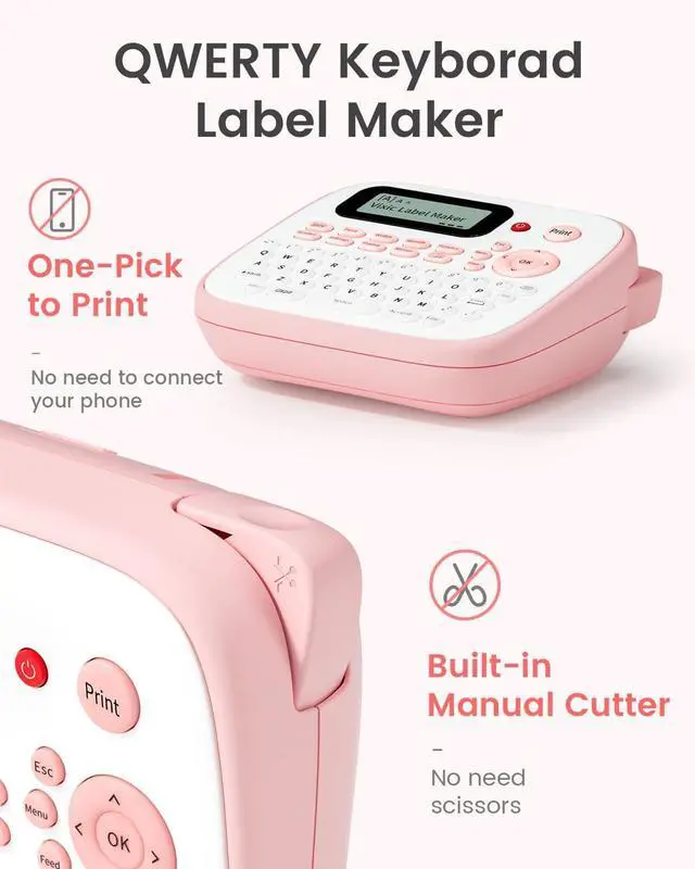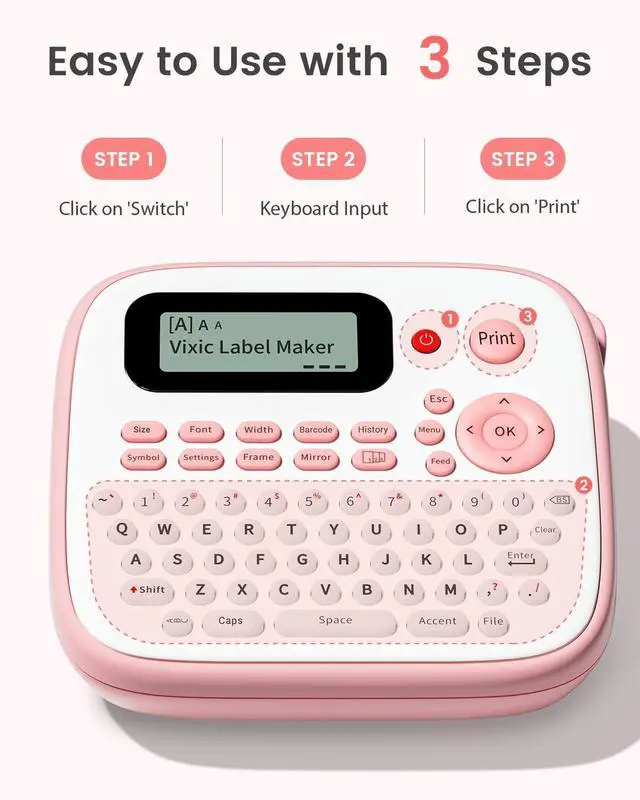 Add your Personal Touch: The D210S label maker pink offers multiple alternatives for pre-designed 800+ symbols, 100+ frames, and 16 different fonts. The handheld label maker even offers the ability to print barcodes, up to 4 lines of text, and allowing you to adjust font sizes (large, medium, small) to cater to all your labeling needs