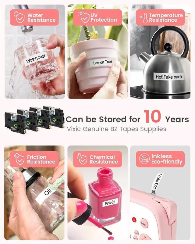 • Vixic D210S Label Maker Machine with Tapes, Easy to Use for All Ages: No need for mobile device connections! The D210S label maker simplifies the process for everyone, including kids and the elderly. From powering on to editing and printing, it only takes 20 seconds! Experience quick and effortless labeling