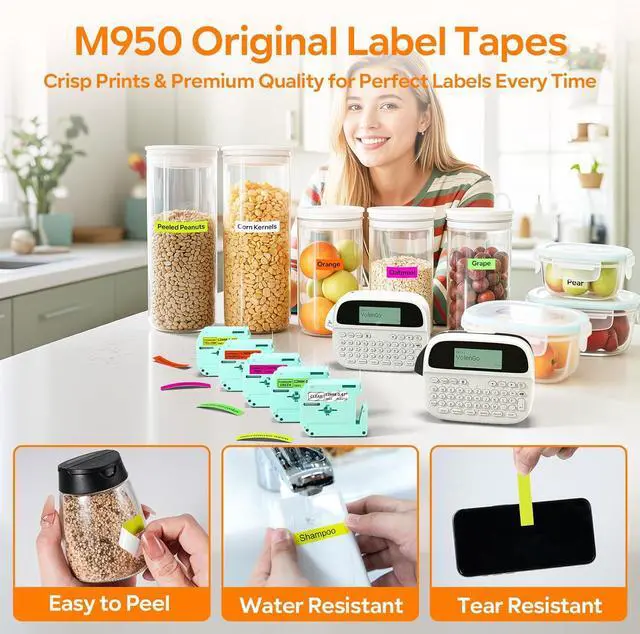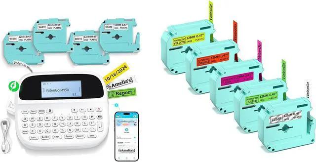: 1* M950 Label Maker; 1* Clear Label Tape & 4* Neon Color Label Tapes & 4* White Label Tapes 12mm x 8m (0.47" x 26.24 ft. )