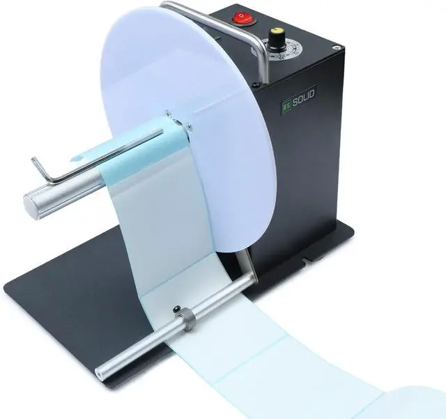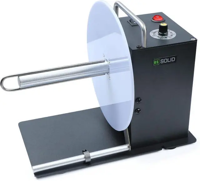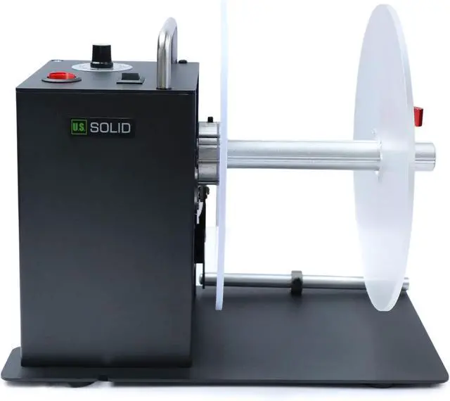 DUAL FLANGE PLATES WORKING: Our U.S. Solid Automatic Label Rewinder Machine has a dual flange plate design. You can use the double flange plates to guide the outer edge of labels and ensure an even roll. That makes it suitable for smaller sizes like washing marks and labels of special materials.