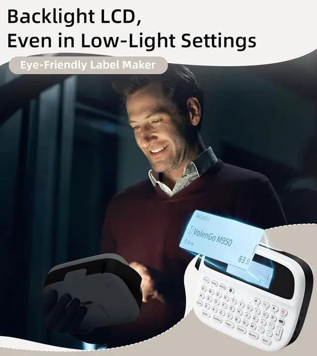 Replacement for Ptouch PTM95 label maker machine, VolenGo label maker features a backlit screen for clear visibility in dimly lit office spaces or classroom storage areas. M950 label maker machine with tape is powered by a rechargeable 1200mAh battery, offering long-lasting power for labeling folders, desk accessories, or teacher supplies. The labeler machine with tape weighs under 1 pound, making it easy to carry between classrooms, offices, or home desks. VolenGo M950 label maker machine with tape produces waterproof labels that resist moisture, ideal for labeling daycare bottles, lunch boxes, or file folders in humid environments. The label makers durable labels withstand extreme temperatures, perfect for organizing freezer bags, outdoor gear, or classroom materials. Replacement for Ptouch label maker machine, The label makers peel-and-stick backing ensures labels adhere securely to smooth surfaces like name tags, bento boxes, or manila folders without residue. The label maker waterproof labels eliminates ink cartridges with its inkless printing technology, eco-friendly for labeling lunch boxes, baby bottles, or school supplies. VolenGo bluetooth rechargeable label maker prints sharp text and graphics, ensuring labels on name tags, file labels, or daycare essentials remain clear over time. M950 label printer includes a built-in QWERTY keyboard for quick typing of student names, classroom must-haves, or teacher appreciation gifts. The label printer pairs with a free app for designing creative labels with fonts, icons, and borders, ideal for teacher gifts, classroom decorations, or office essentials. VolenGo labeler machine with tape supports multiple tape colors and widths, perfect for color-coding office supplies, storage bins, or classroom materials. The bluetooth label makers reusable labels work well for labeling daycare items, lunch containers, or seasonal classroom supplies. The label maker waterproof labels is a must-have for office organization.