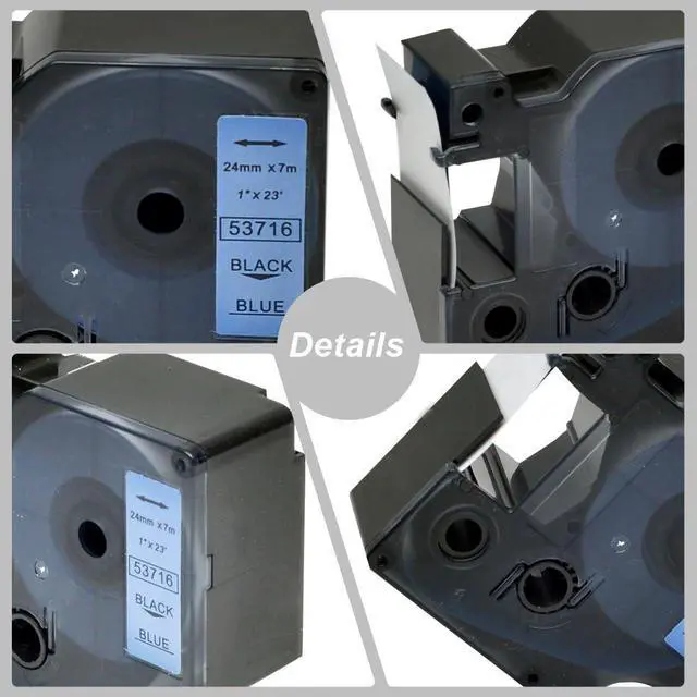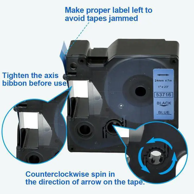 Color & Dimesion:Dymo d1 tape color:Black print on blue;Size:1 inch (24mm) widthx23 feet(7m)length,d1 refills comes in a variety of colors and sizes.5rolls labeling tape packed in a box