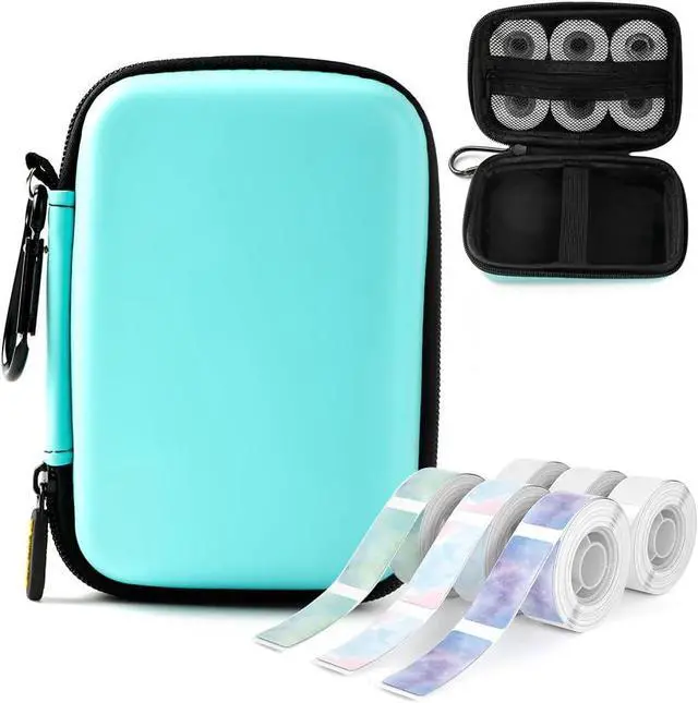 Package Include: 1x Green D30 Label Maker Machine with 1x Green Case and 4 Rolls of White Label Tape, 1 Rolls of Clear Label Tapes, 2 Rolls of Stary Pattern Label Tapes