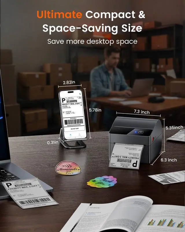 [Versatile Label Printer for Business & Home] - Master any labeling challenge with 1"-4" label width compatibility. From shipping labels and barcodes to retail pricing and inventory management, this label printer 4x6 delivers crisp, professional results for E-commerce logistics, Warehouse organization, Retail tagging, Home decluttering, And beyond