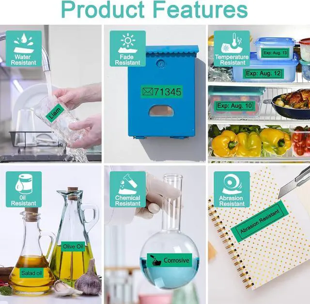 It is suitable for Indoor or Outdoor use, even in harsh weather conditions. The replacement letratag tapes can be used for labeling kitchen, shelving, and supply cabinets and can be used in freezers, microwaves, and dishwashers, etc. Print Green and natural, make your things all be tidy and clean at a glance.
