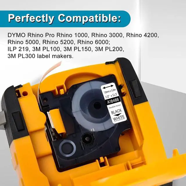 Compatible for Dymo Rhino Label Makers: Rhino PRO 1000, Rhino 3000, Rhino 4200, Rhino 5000, Rhino 5200, Rhino 6000; ILP 219, 3M PL100, 3M PL150, 3M PL200, 3M PL300 and Tyco T107M older rhino label makers.