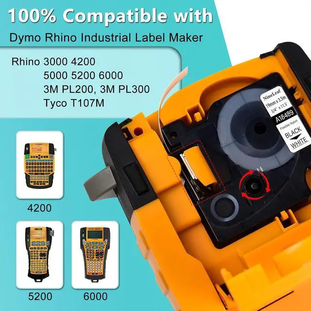 Compatible for Dymo Rhino label makers: Rhino 1000, 3000, 4200, 5000, 5200, 6000, ILP 219, 3M PL100, 3M PL150, 3M PL200, 3M PL300 and more old label printers.