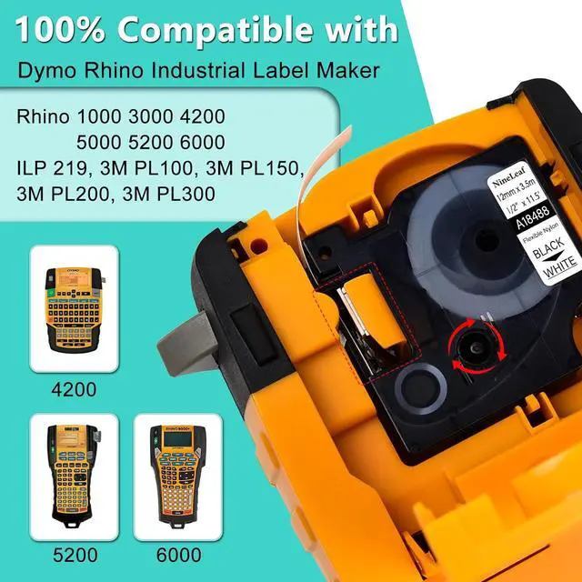 Compatible for Dymo Rhino label makers: Rhino 1000, 3000, 4200, 5000, 5200, 6000, ILP 219, 3M PL100, 3M PL150, 3M PL200, 3M PL300 and more old label printers.