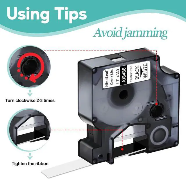 Package includes: 8 pack compatible for dymo 18488 A18488 industrial flexible nylon label tape; Color: black on white, Size: 1/2 inch (12mm) x 11.5 feet (3.5m)