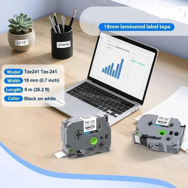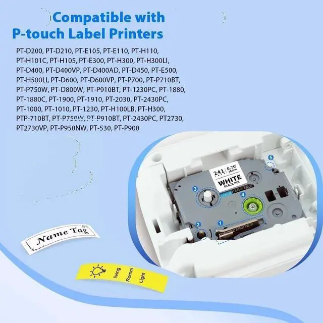 Perfectly works with P-Touch label makers, matching 7 models including TZe241, TZe141 and TZe441, with a standard 18mm width for multi-scenario use.