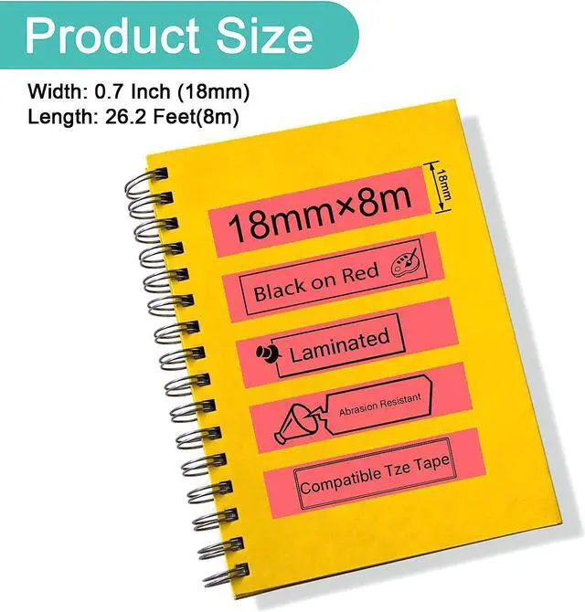 Color: TZE-251 black on white and TZE-441 black on redLength: 8m (26.2 feet), Width: TZE-251 24mm (0.94 inch or 1'') and TZE-441 18mm(0.7 inch or 3/4'')