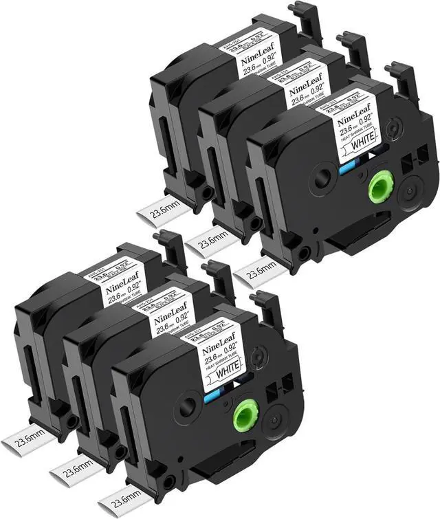 NineLeaf 6PK Compatible for Ptouch HSe-251 HSe251 HS-251 HS251 23.6mm 0.92 Black on White Heat Shrink Tubes for PT-P700 PT-P710BT PT-P750W PT-P750WVP Label Maker Tapes