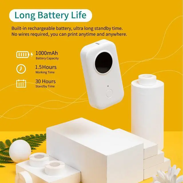 Powerful Battery - Built-in rechargeable 1000mAh lithium battery, energy saving and environmental protection. once, can continuously print up to 1.5hrs.