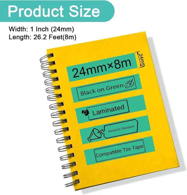 Color: TZE-251 black on white and TZE-751 black on green Length: 8m (26.2 feet), Width: 24mm (0.94 inch or 1'')