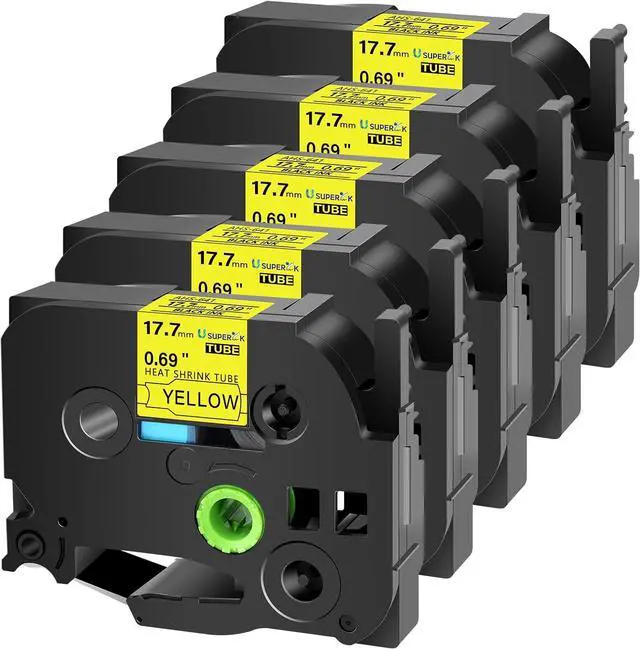 5PK Compatible for Ptouch HSe-641 HSe641 HS-641 HS641 Black on Yellow 17.7mm 0.69'' Heat Shrink Tubing for Wire Cable for PT2600 PT2610 PT2700 PT2710 PT2730 Label Maker Tape