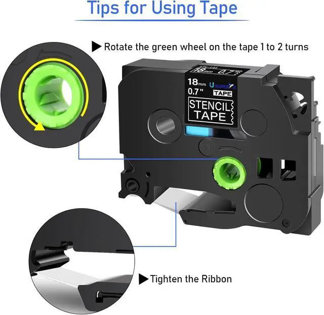• USUPERINK Alternative Replacement Compatible for Brother P-touch ST141 STe141 STe-141 ST-141 Preminum Standard Mobile Solutions Non-adhesive Stencil Label Maker Tapes