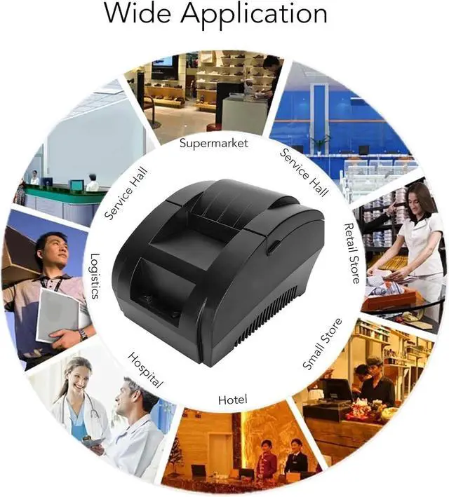 Multi Purpose: This shipping label printer is an ideal choice for receipt printing in large shopping malls, supermarkets, retail, hotels, canteens, restaurants, etc.