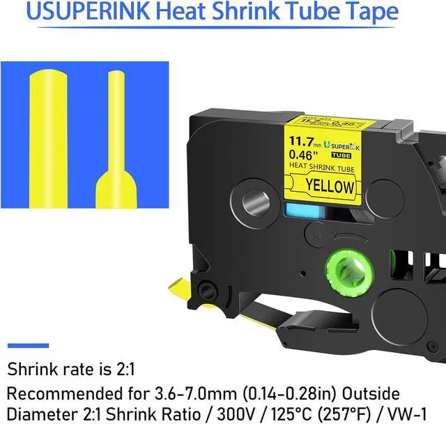 USUPERINK HSe-631 Heat Shrink Tubes label tapes are perfect to mark cables,fibers and wires and can be used for cables in diameter 3.6mm (0.14 inch) and 7.0mm (0.28 inch).