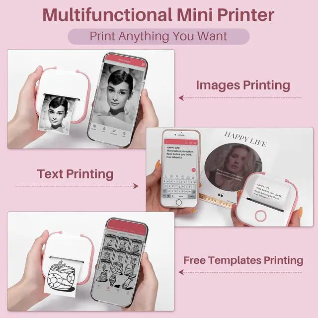 Use Occasions: Memoking T02 203dpi small wireless printer is suitable for printing black and white memos, records, plenty of APP themes, school for students, children, teachers, handwork teaching, work plans, shopping lists, TO DO lists and so on. For Christmas gift