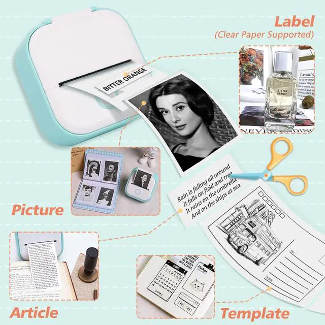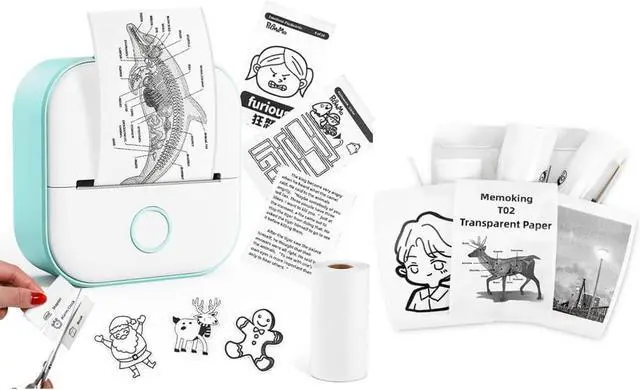 Use Occasions: Memoking T02 203 dpi small wireless printer is suitable for printing black and white memos, records, plenty of APP themes, school for students, children, teachers, handwork teaching, work plans, shopping lists, TO DO lists and so on. For Christmas gift