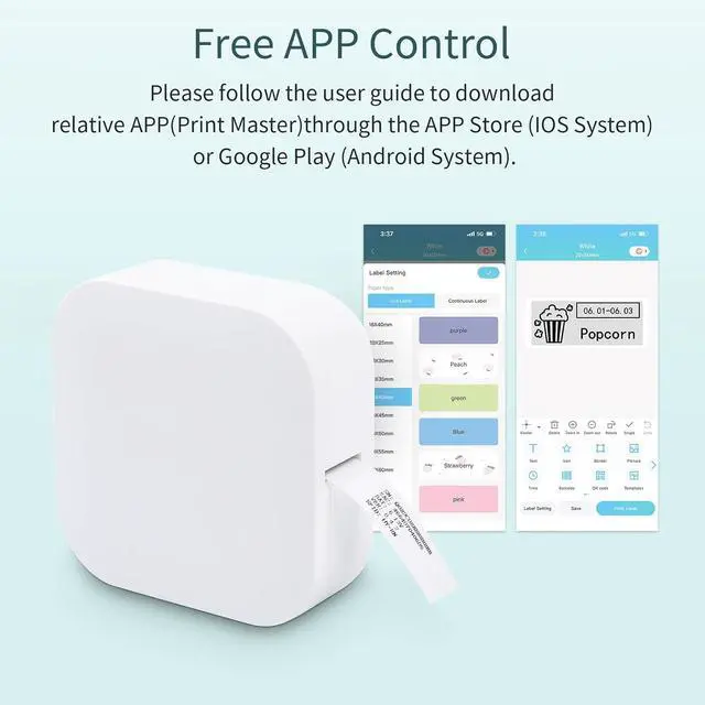 Convenient to Print - Connection via BT to your Phone, compatible with Android and iOS systems. Search Print Master in App Store or App Store to download. Then feel free to design and print your sticker at anytime.
