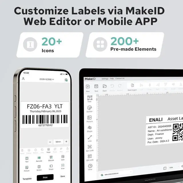 Enhanced Efficiency - D50 label printer is equipped with an automatic cutter for effortless bulk label cutting. Our integrated label and ribbon cartridge design allows for consumable changes in just 5 seconds.
