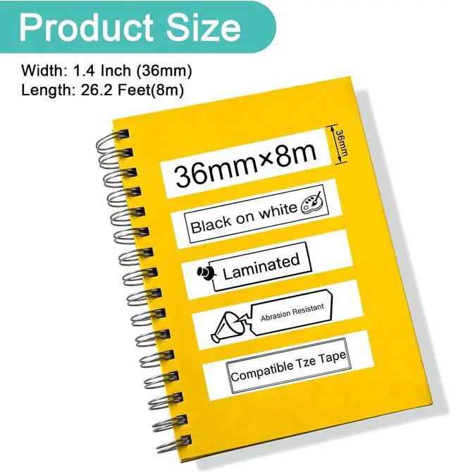 NineLeaf Compatible for Brother P-touch TZe-261 TZe261 TZ-261 TZ261 Laminated Label Tape, Color: Black on White,Length:8m(26.2ft),Width:36mm(1.4")