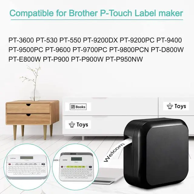 Compatible for brother p-touch label makers:PT-3600 PT-530 PT-550 PT-9200DX PT-9200PC PT-9400 PT-9500PC PT-9600 PT-9700PC PT-9800PCN PT-D800W PT-E800W PT-P900 PT-P900W PT-P950NW and more printers listed in the description.