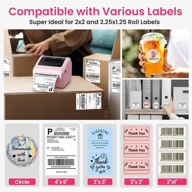[Strong Helper for Commercial and Home Use] - This usps label printer can support the width of labels ranges from 1 - 4.6 inches, very suitable for printing shipping labels, mailing labels, barcode labels, and all kinds of labels you want. Whether you need this shipping label maker for shipping packages, labeling products, operating logistics efficiently, managing warehouse, organizing personal items, setting prices in retail, even item barcode , this bluetooth shipping label printer can always
