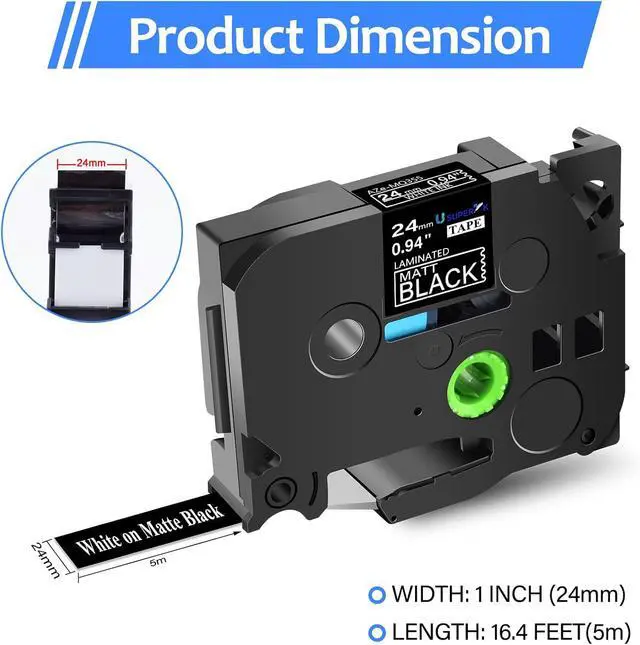 Color: white text on matte black background, length: 5m (16.4 feet), width:24mm (1 inch or 0.94'')