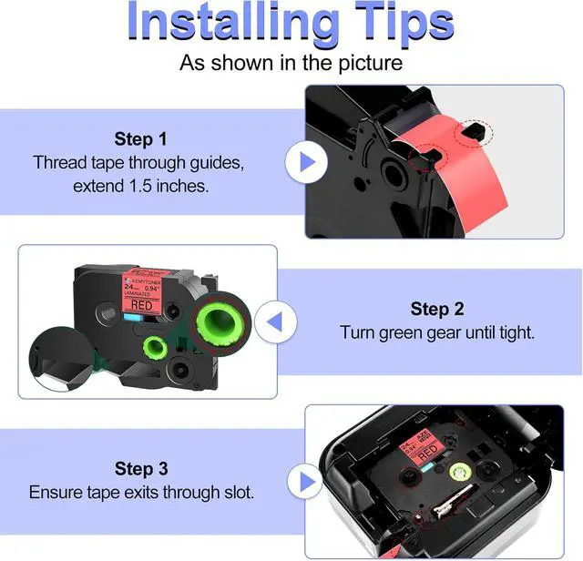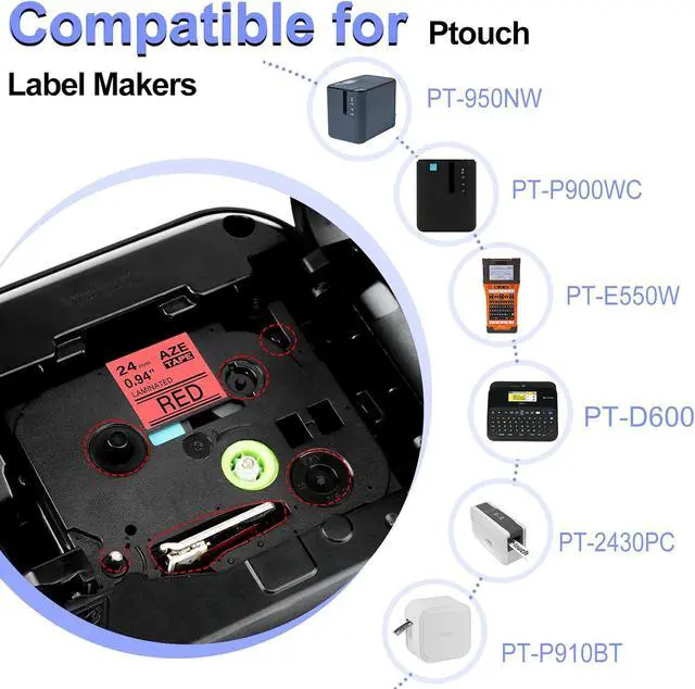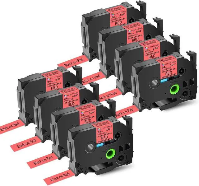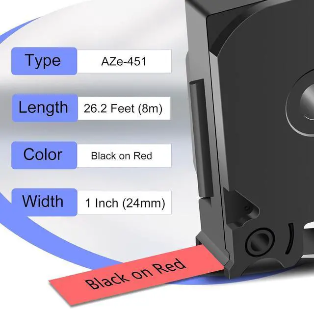 Package Included: 8 pack KCMYTONER compatible for ptouch TZe-451 TZ-451 AZe-451 laminated label maker tape. Color: black print on red; width: 24mm(0.94 inch), length: 8m (26.2ft) each