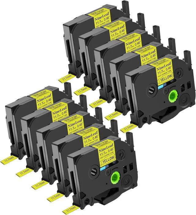 NineLeaf 10PK Compatible for Ptouch HSe-631 HSe631 HS-631 HS631 11.7mm 0.46 Black on Yellow Heat Shrink Tubes for PT-3600 PT-P750WVP PT-P900 PT-P900W Label Maker Tapes