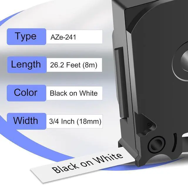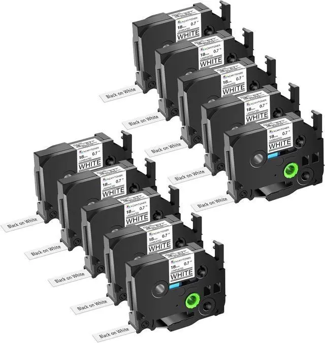 Package Included: 10 pack KCMYTONER compatible for Brother P-touch TZe-241 TZ-241 AZe-241 laminated label maker tape. Color: black print on white; width: 18mm 0.7 inch, length: 8m (26.2ft) each.