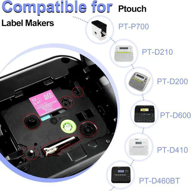 Compatible Models: PT-P700 PT-D210 PT-D400 PT-D450 PT-D600 PT-D200 PT-H100 PT-H110 PT-9700PC PT-1880 PT-1230PC PT-1280 PT-1800 PT-1830 PT-1890C PT-2430PC PT-2730 PT-1290 PT-1090 PT-1880C PT-1890SC PT-1950 PT-200 PT-E300 PT-E300VP PT-E500 PT-P750W PT-P750WVP PT-P900W PT-P950NW PT-CUBE PT-1010S PT-1090BK PT-1100ST PT-1120 PT-1130 PT-1160 PT-1170 PT-1170S PT-1180 PT-1180SC PT-1180SP PT-1190 PT-11Q PT-1200 PT-1280BT PT-1280SP PT-1280SR PT-1280TG, and more.