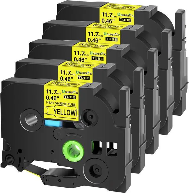5PK Compatible for Ptouch HSe-631 HSe631 HS-631 HS631 Black on Yellow 11.7mm 0.46'' Heat Shrink Tubing for Wire Cable for PT-P750W PT-P750WVP PT-P900 PT-P900W Label Maker Tape