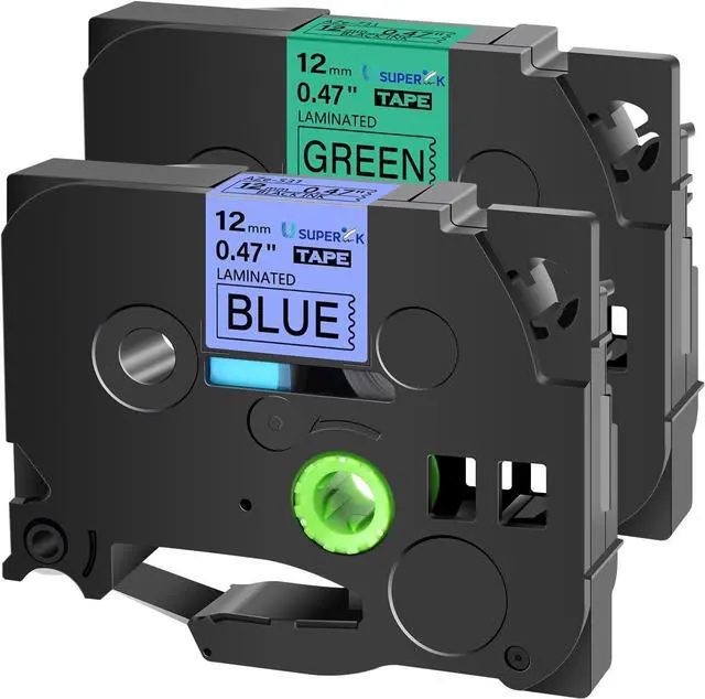 Color: TZe531 black on blue and TZe731 black on green tape, Length: 8m (26.2 feet), Width:24mm (0.47 inch or 1/2'')