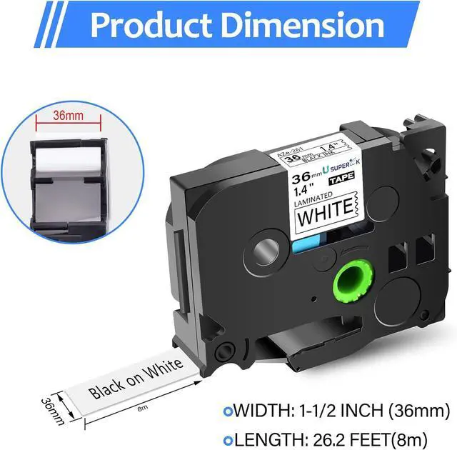 Color: tze-261 black on white and tze-s651 black on yellow, Length: 8m (26.2 feet), Width: tze-261 36mm (1.4 inch) and tze-s651 24mm (1 inch or 0.94'')