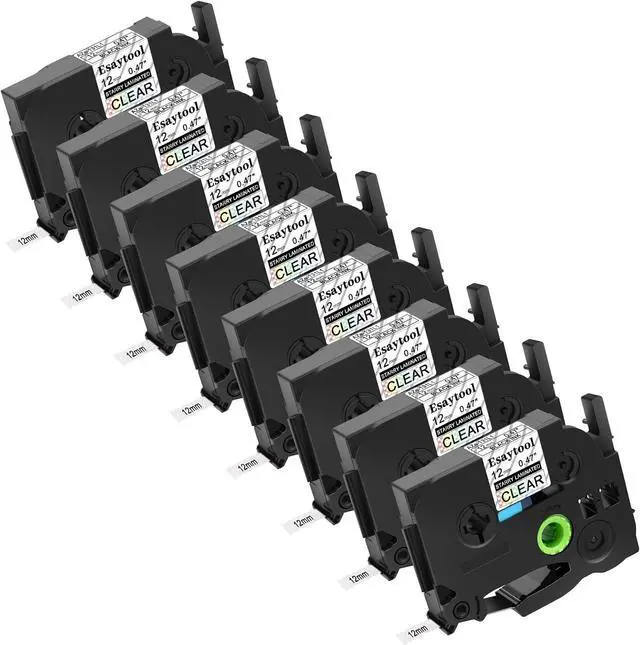 Product InformationEsaytool 8 Pack Compatible with P-touch TZe131L1 AZE131L1 TZ131L1 Labeling Tape; Color:Black Print on Rainbow Glitter Clear; Width:0.47 inch(12mm), Length:26.2 feet(8m).
