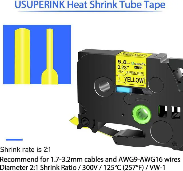 USUPERINK Alternative Replacement Compatible for Ptouch HSe-611 HS-611 HSe611 HS611 AHS-611 Preminum Heat-shrink Tube Label Maker Tape